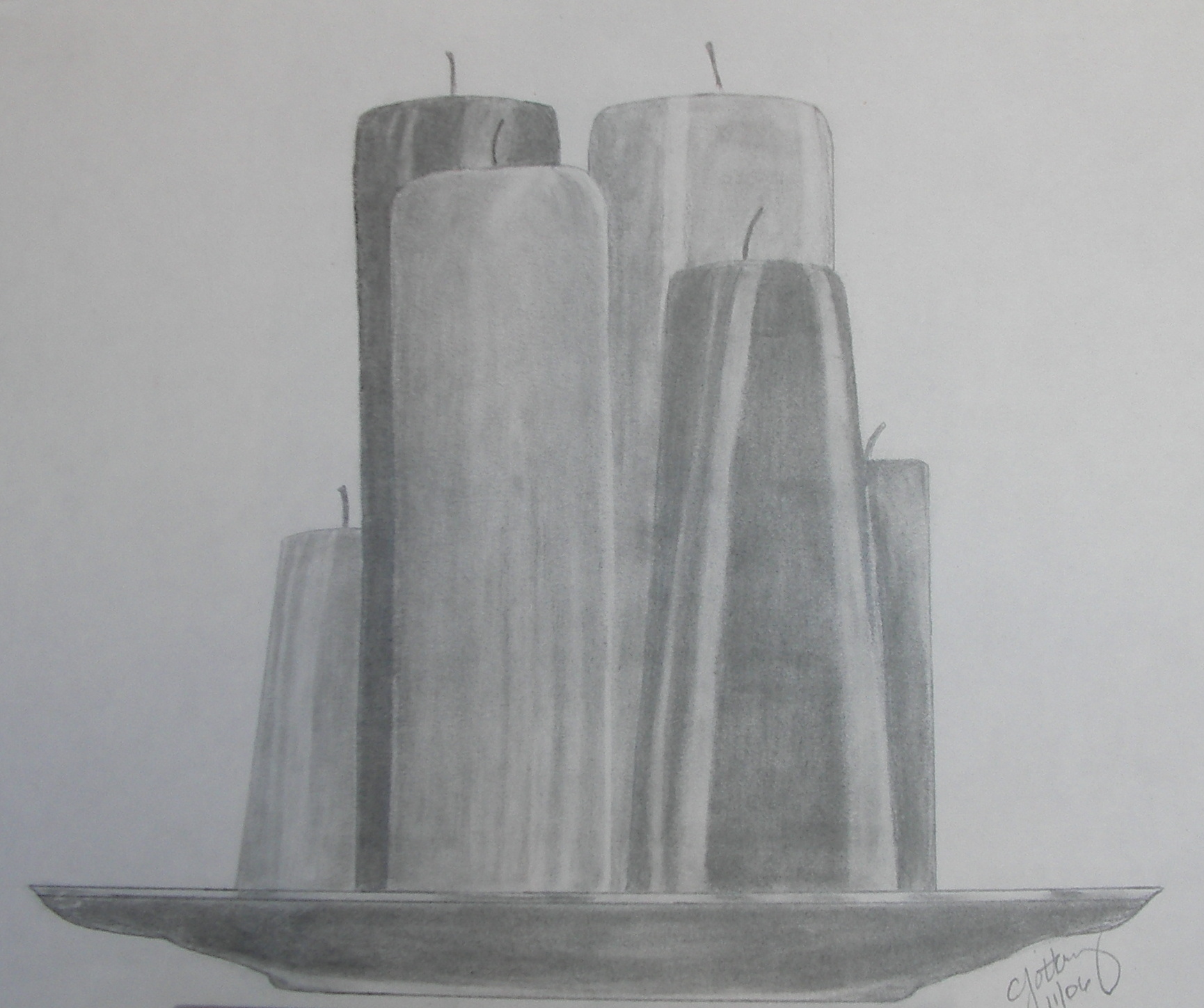 carolottaway in Graphite January 29, 2008January 29, 2008 14 Words “Candles” in graphite I was experimenting with shading. The perspective is off, but I still like it. Share this: Click to share on Facebook (Opens in new window) Facebook Click to share on Tumblr (Opens in new window) Tumblr Click to share on Pinterest (Opens in new window) Pinterest Like Loading... Related