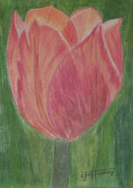 5 x 7 Faber Castell colored pencil on Stonehenge and Bristol Smooth . The tulip is from a photo taken by stalksthedawn at W/C.