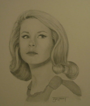 After taking a billion pictures, this was the best of the lot.  It’s very frustrating, but I didn’t want to let another day go by without a post.  I was able to sneak away and spend some QT with my drawing board.  It felt really good to lay down some graphite!  I really don’t know if this looks like Elizabeth Montgomery or not.  I like to think it does, but my sister thought it was Grace Kelly, but David knew exactly who it was  soooooo…. I’m not too insulted because both of them are pretty ladies and I mainly wanted to draw blonde hair so capturing facial features would be a bonus.   I still need to draw a man though…is there any beef cake any of you would like to see in graphite?