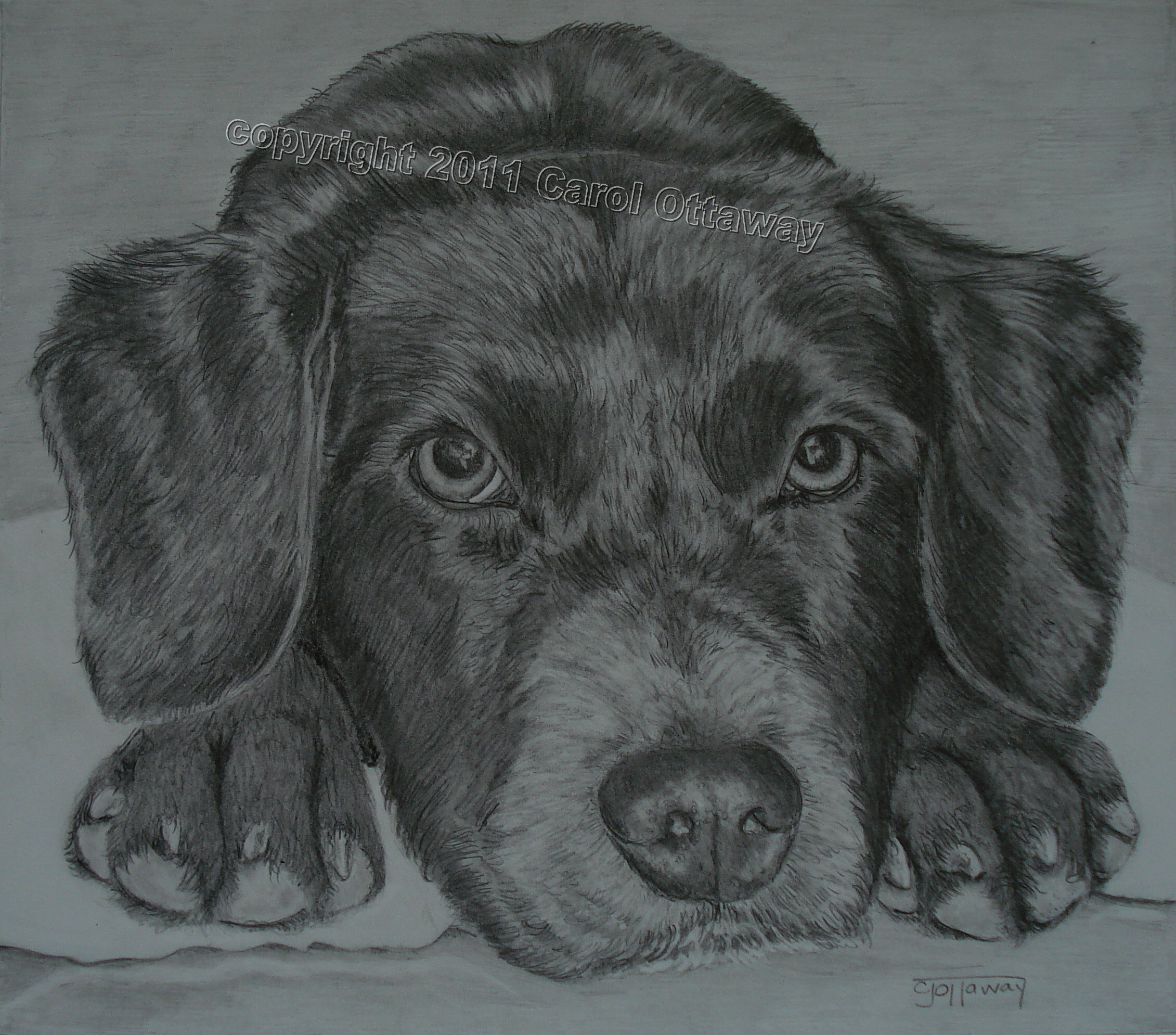 I found this partially drawn portrait when I was cleaning out some papers in my office. I wondered why I let this perfectly good drawing go to waste and decided to finish it. I think I chose the photo because of its paws. I draw the head and neck most of the time, and probably thought that this would be good practice. This isn’t one of my favorite drawings, but I love those paws!