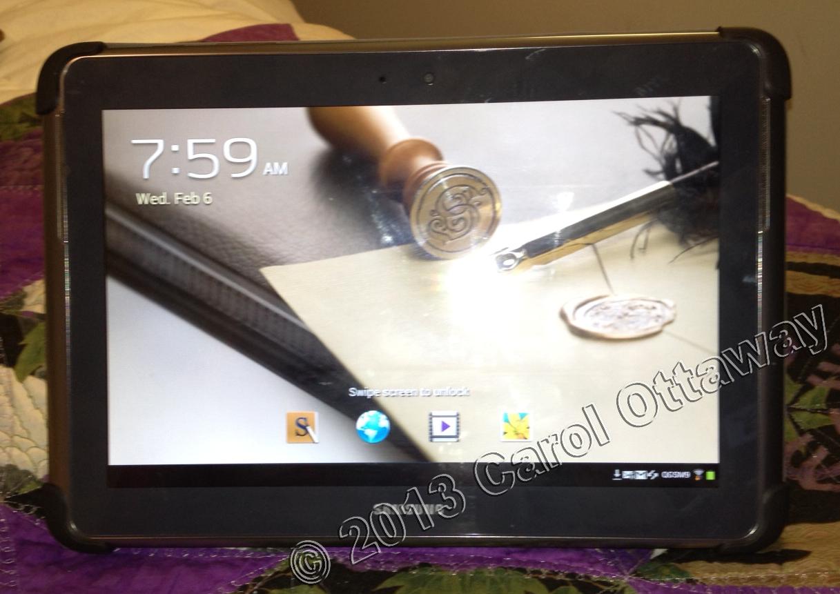 “How do I love thee, let me count the ways…”   The above picture is my much-loved tablet that David and Alana gave me for Christmas.  I love it!!!  I had researched e readers and tablets for a couple of months, weighing pros and cons, price and features.  The Samsung Galaxy tablet has fulfilled all my expectations and more.  I have Photoshop and I can  even draw on it.  Other than my  Baby Tenderlove this has been my favorite toy EV-ERR!