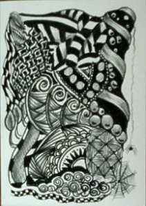 My rock models were variations of grey, black and brown. I thought it was really boring so I added different colors. It looks more like something you would find in a fish bowl. This took me three days to complete and I can’t decide if I like it or not, but it was good playing with all those mediums at one time.